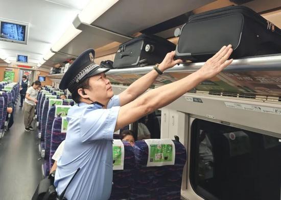 “列車即將進(jìn)站,大家不要越過安全防線?!编须s的站臺(tái)上響起蔣國(guó)慶略帶沙啞的聲音。列車進(jìn)站停穩(wěn)后,他眼觀六路耳聽八方,組織旅客先下后上,為攜帶大件行李的旅客搭把手。眼看臨近開車時(shí)間點(diǎn),蔣國(guó)慶加快了在各個(gè)車廂內(nèi)外奔走的腳步?!皟啥塑囬T都可以上,先上車,再找座位!”