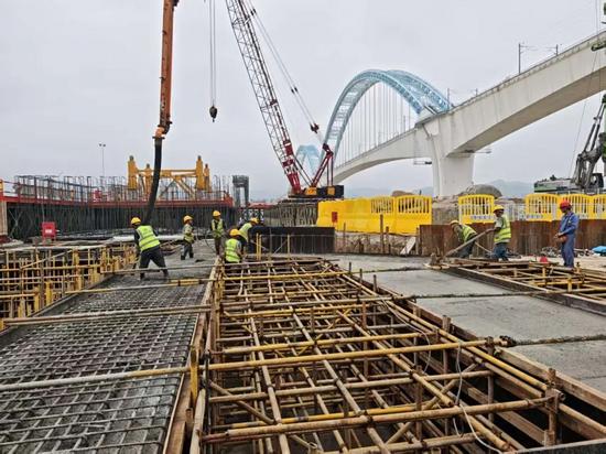 南岸承臺鋼筋綁扎同步推進