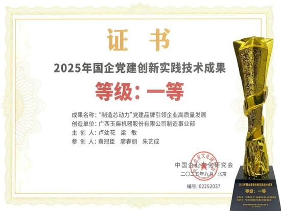 近日,由中國企業(yè)文化研究會(huì)主辦的2025年國企黨建創(chuàng)新實(shí)踐交流會(huì)在北京舉行,會(huì)上正式發(fā)布“2025國企黨建創(chuàng)新實(shí)踐技術(shù)成果”。其中,玉柴四項(xiàng)成果入選。