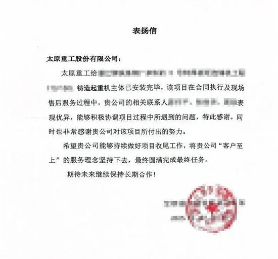 金杯銀杯,不如用戶的口碑。這封表揚信,是太重人想用戶之所想、急用戶之所急的又一次生動實踐。未來,太重將持續(xù)提升產(chǎn)品質(zhì)量、優(yōu)化服務(wù)流程、增強服務(wù)力度,為用戶提供最具競爭力的產(chǎn)品、最優(yōu)的解決方案與超預(yù)期的服務(wù)。