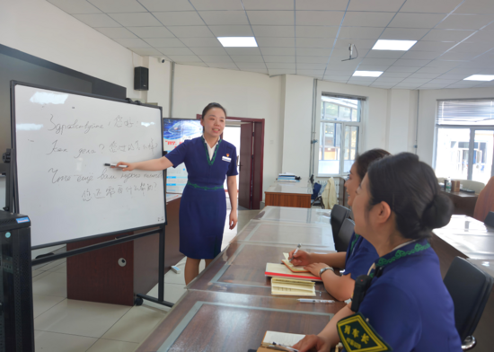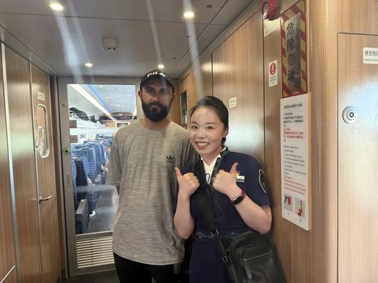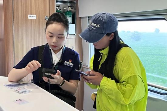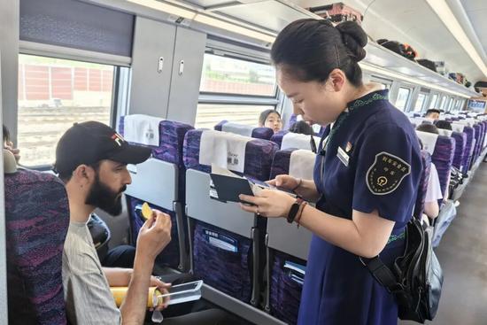 入路以來,張煜的語言能力為列車工作帶來不少方便。她用專業(yè)的外語水平,為外國旅客提供貼心的列車服務(wù)。