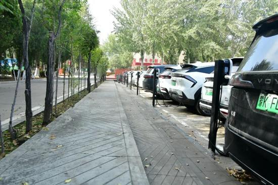 在上灣煤礦1號公寓樓南側(cè)停車場22個車位安裝了雙槍慢充11臺