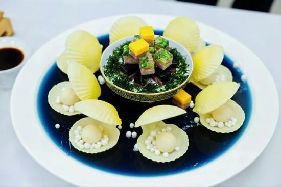 菜品介紹:海浪凝成白貝,靜臥餐盤,內(nèi)里是奔涌的海洋——灌湯珍珠頃刻進(jìn)發(fā),酸甜流淌。一如徐工,以全球擔(dān)當(dāng)立足于世界舞臺,合作共贏共涌未來。
