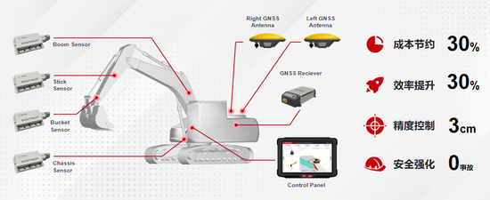 報(bào)道稱(chēng):搭載3D高精度作業(yè)系統(tǒng)的三一智能挖機(jī)能為機(jī)手提供直觀的視覺(jué)引導(dǎo),通過(guò)校正服務(wù)和實(shí)時(shí)姿態(tài)計(jì)算,可以將鏟斗定位精度控制在3厘米以?xún)?nèi)。
