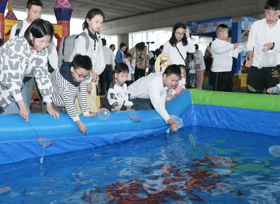 游樂(lè)區(qū)域,充氣城堡、釣魚(yú)、投籃、抓娃娃、電子游戲、親子運(yùn)動(dòng)項(xiàng)目等多個(gè)潮玩齊上陣,小朋友們玩得不亦樂(lè)乎,家長(zhǎng)們也一起回到童年時(shí)光,與孩子一起感受著親情的溫暖。