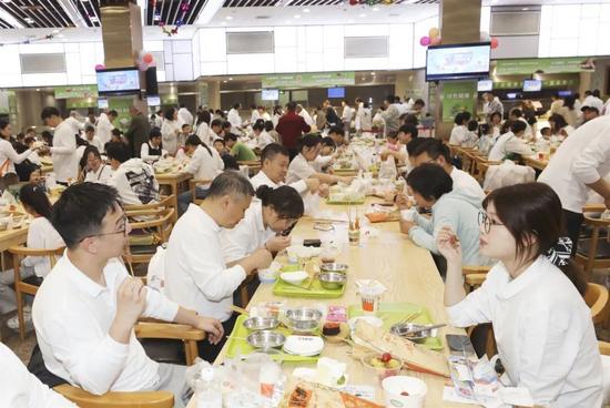 在職工食堂,事業(yè)部為員工和家屬們準(zhǔn)備了美味可口的午餐,大家一邊用餐,一邊分享參加活動(dòng)的感受,整個(gè)食堂充滿(mǎn)了溫馨和幸福。