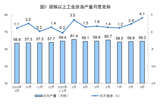 原油生產(chǎn)增速加快。月份,規(guī)上工業(yè)原油產(chǎn)量1777萬噸,同比增長4.1%,增速比月份加快1.7個百分點;日均產(chǎn)量59.2萬噸。
