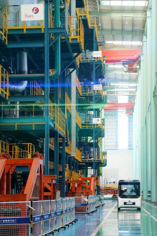 柳鋼集團“數(shù)智化”生產(chǎn)車間:該運輸機器人可以取代傳統(tǒng)軋輥運輸車,實現(xiàn)連退和鍍鋅機組每班工作輥、中間輥運輸無人化,大幅降低職工勞動強度,進一步提高軋輥運輸效率,減少生產(chǎn)中不穩(wěn)定因素。