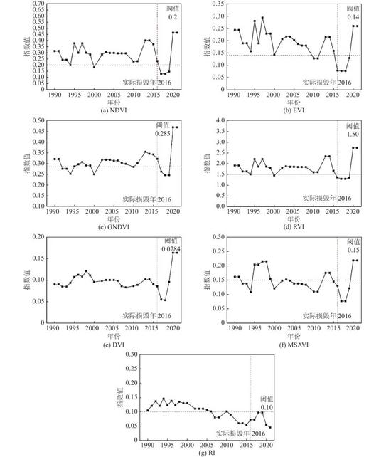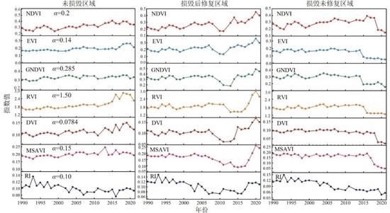 圖5 擾動(dòng)區(qū)域植被指數(shù)年際變化